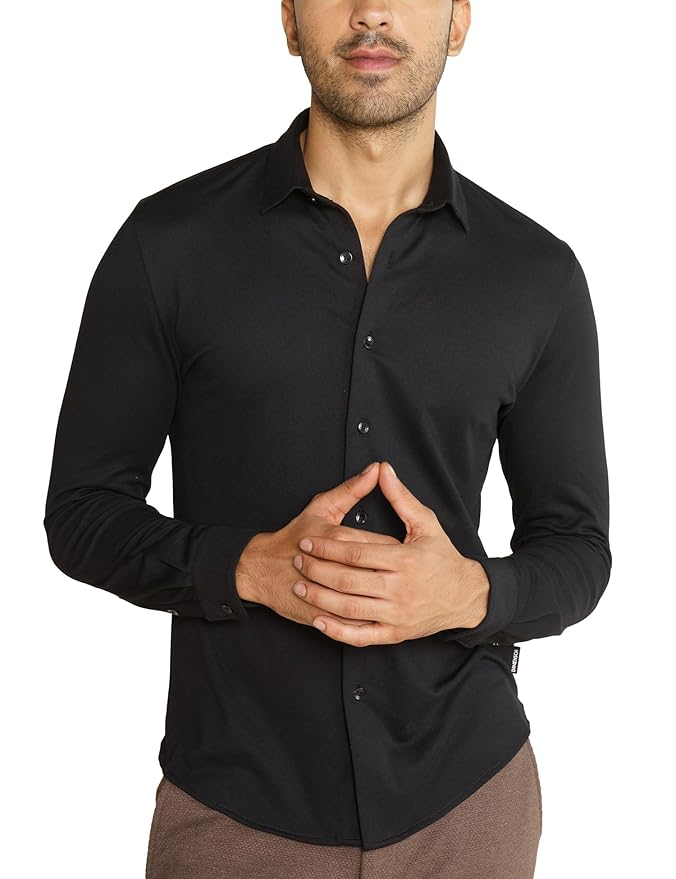 Navy Blue solid regular-fit shirt, has a spread collar, button placket, short sleeves and curved hem